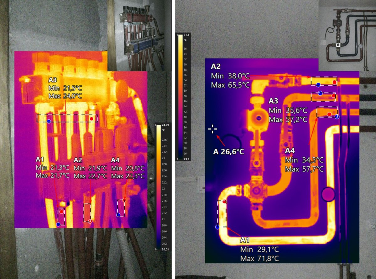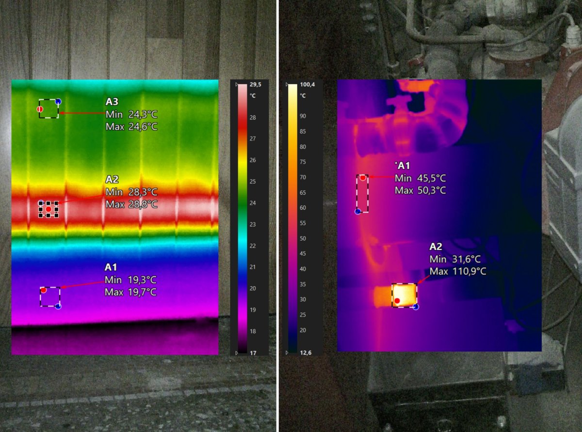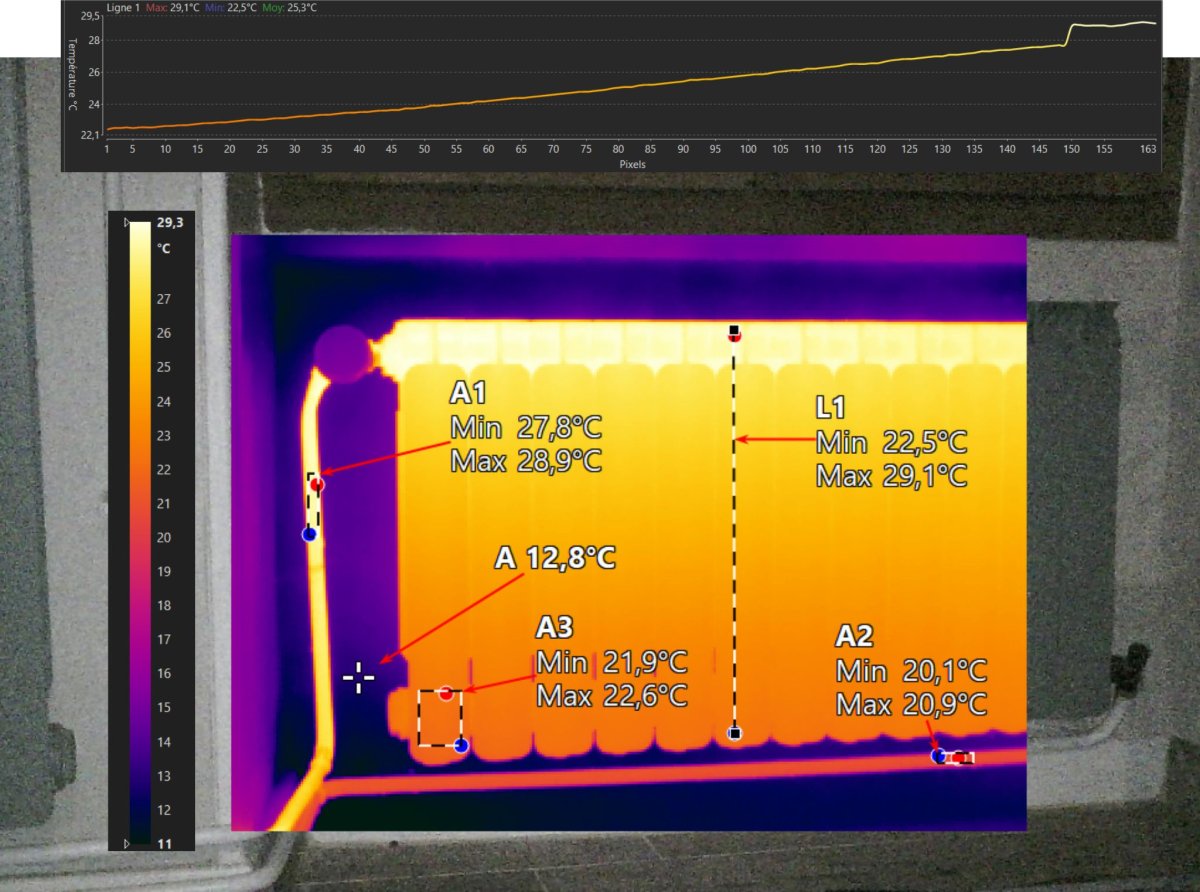 Recherche de fuites thermiques ou de points chauds, contrôle du bon fonctionnement de radiateurs ou de vannes de mélange, répartition de charge thermique sur collecteurs, localisation de canalisations derrière parement ou noyées dans des dalles, ... nous vous assistons dans vos besoins de mesures de température les plus divers.