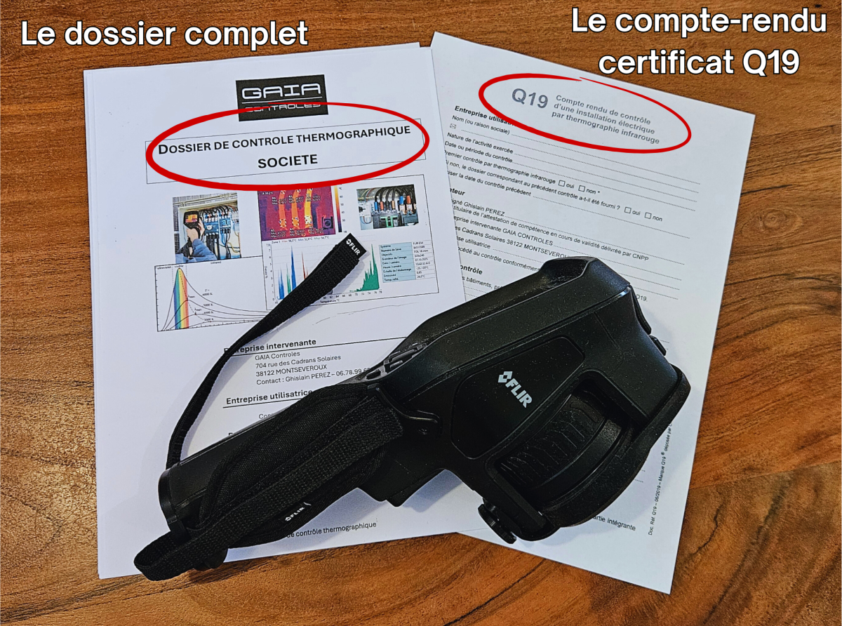 Le compte-rendu de contrôle, également appelé certificat Q19, est un formulaire de synthèse du rapport complet à destination de l'assureur de l'installation thermographiée. Il en reprend les éléments essentiels, la liste des anomalies et les conclusions.